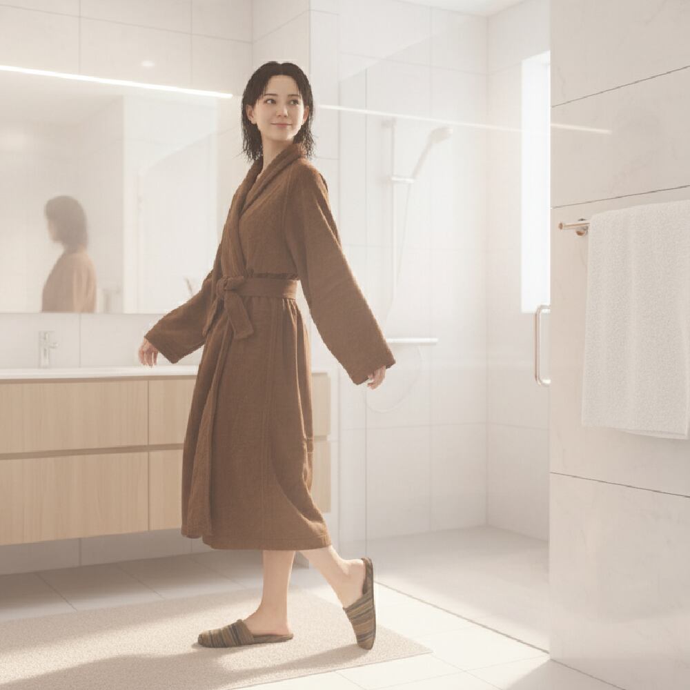 このバスローブは、贅沢な自分時間を過ごす方にぴったりです。お風呂上がりやリラックスタイムに手離せなくなること間違いなしですよ。また、ホテルライクな贅沢な自分時間を味わいたい方にもオススメです。